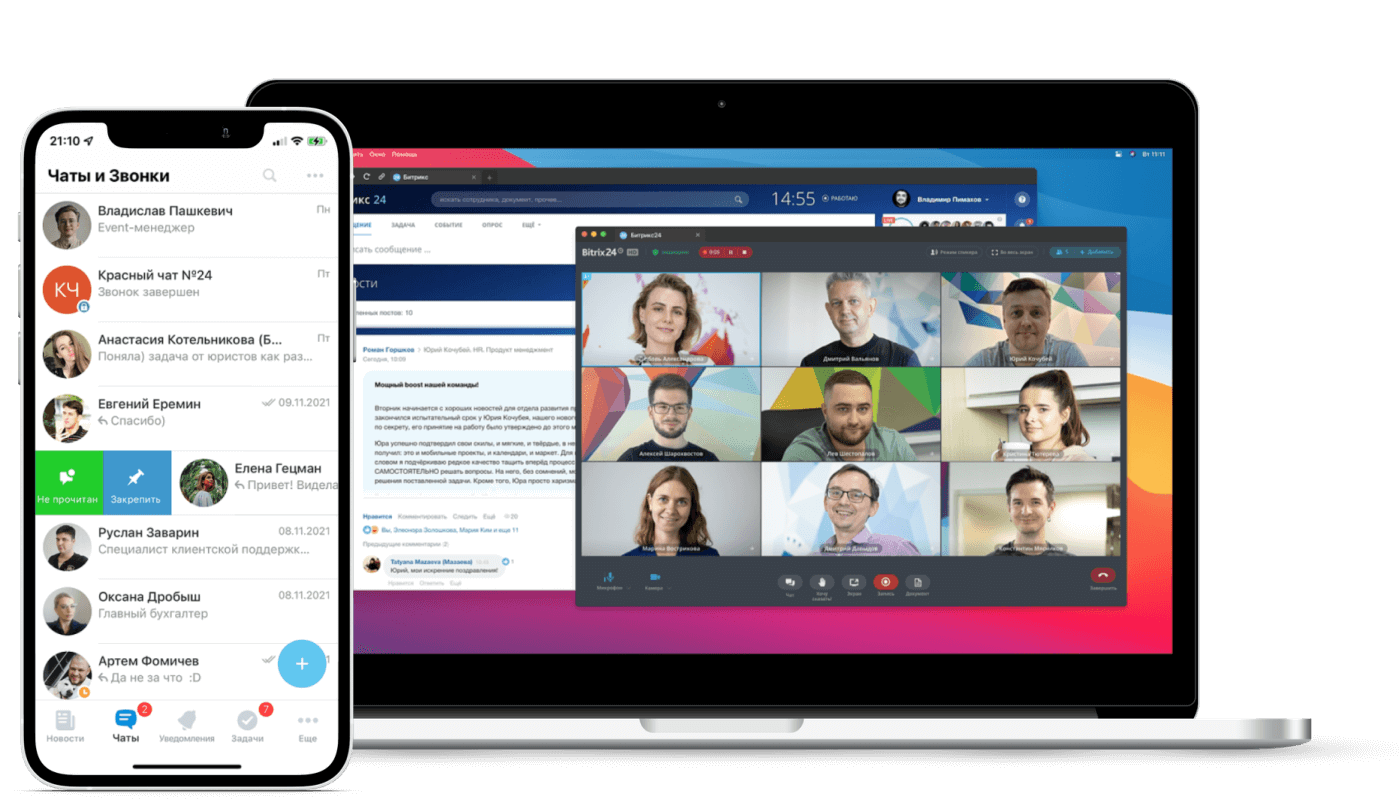 Битрикс24 заменяет сразу десятки сервисов и приложений. Помимо планировщика задач, в нем есть чаты